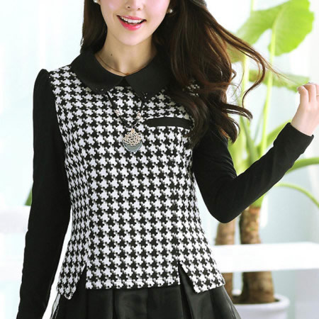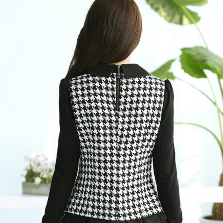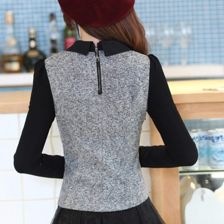 新款韩版修身假两件套修身长袖欧根纱女连衣裙送原版项链