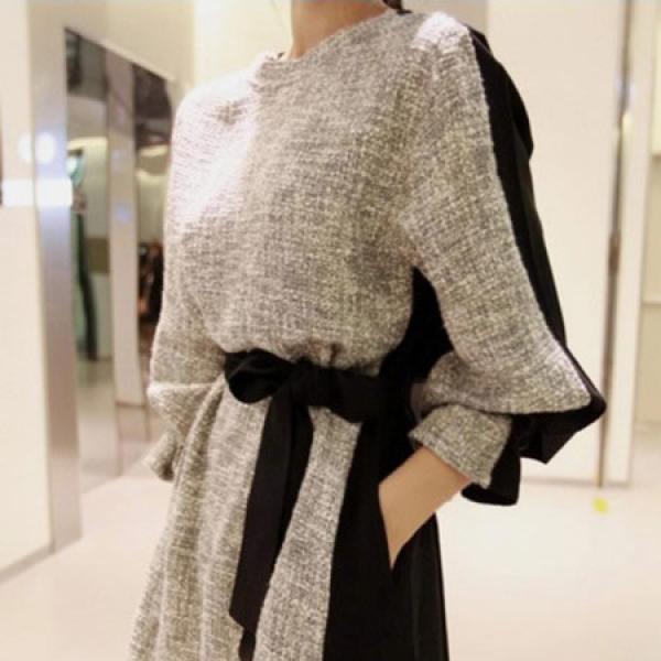拼接系带连衣裙 修身连衣裙 长袖打底裙