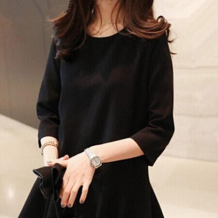 【最后100件卖完下架】休闲约会必备单品,版型超赞气质7分袖连衣裙,荷叶边裙,暗色系百搭,可做打底,也可单穿。